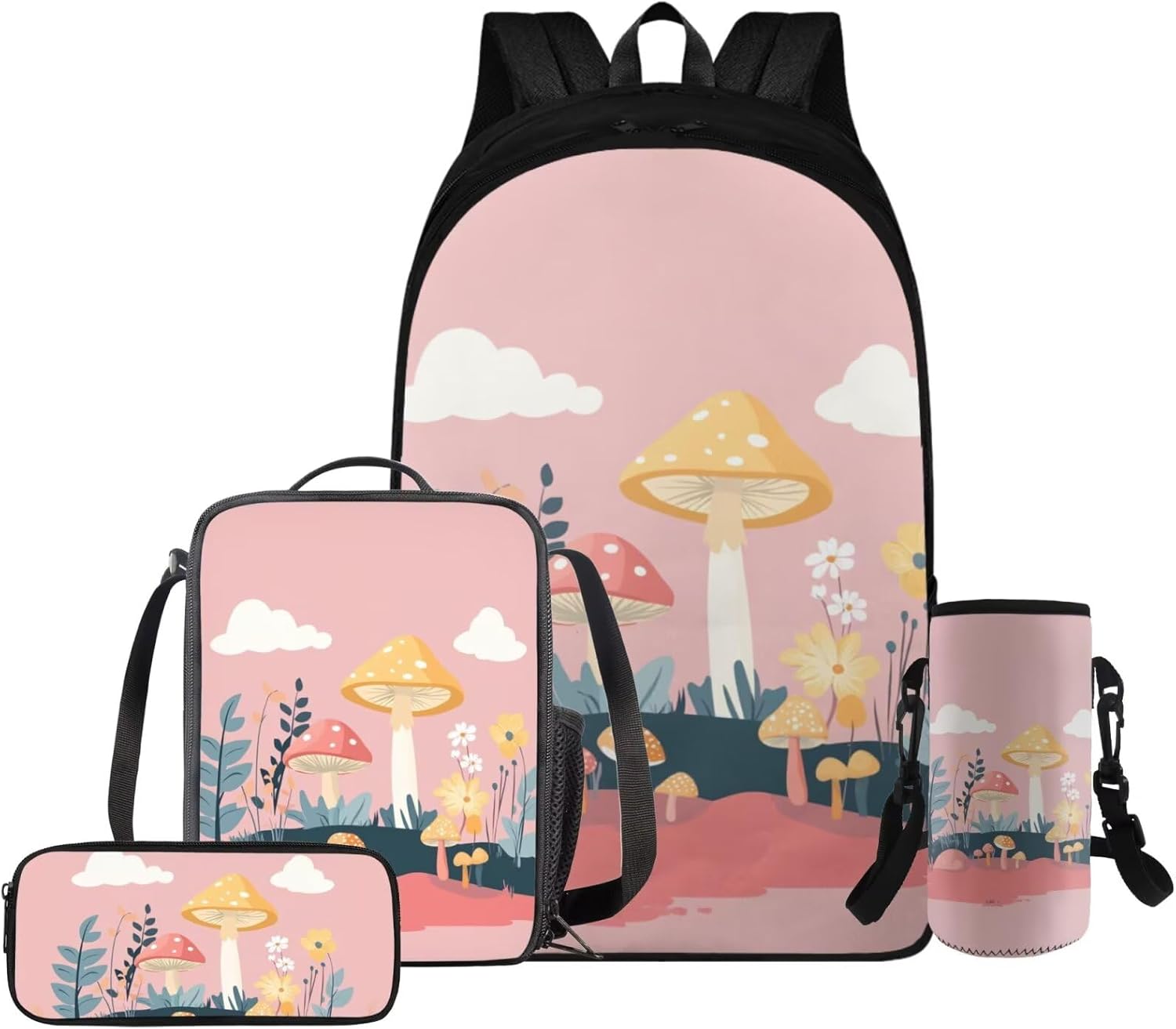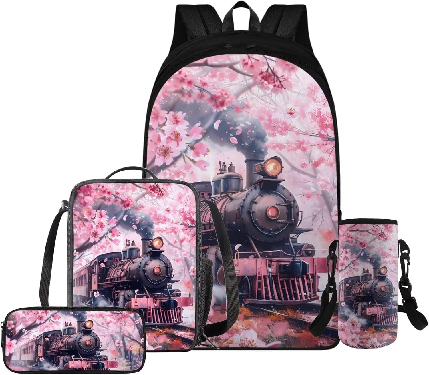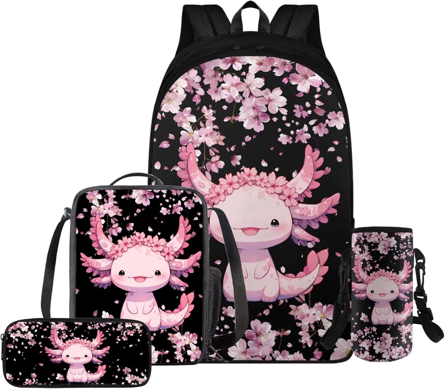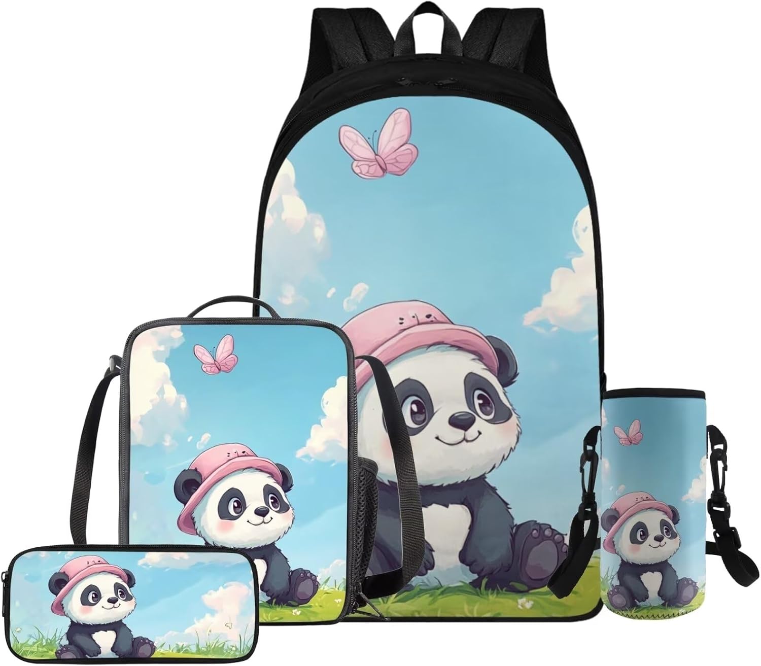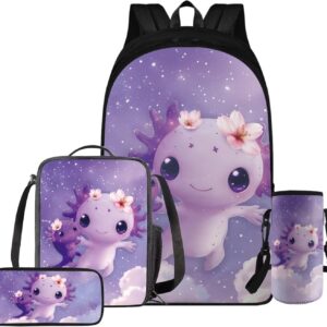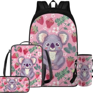 Rnyleeg Pink Cat Backpack for School Girls 9-12 with Lunch Box Kawaii Kids Backpack Set Middle School Bookbag Set 4 in 1 Kids School Bag Rucksack