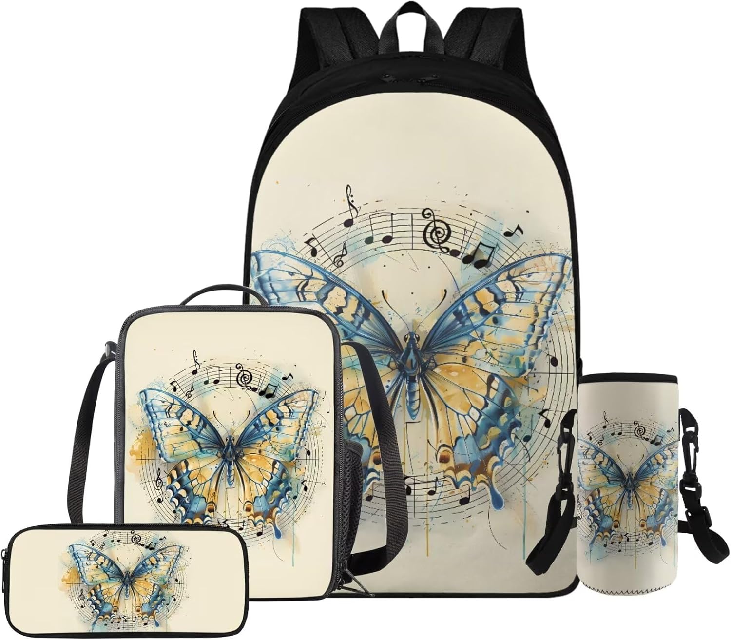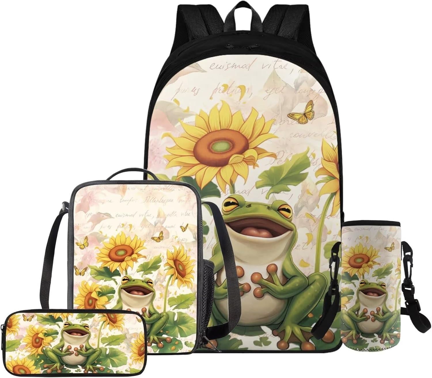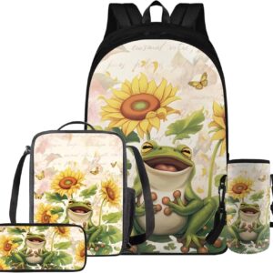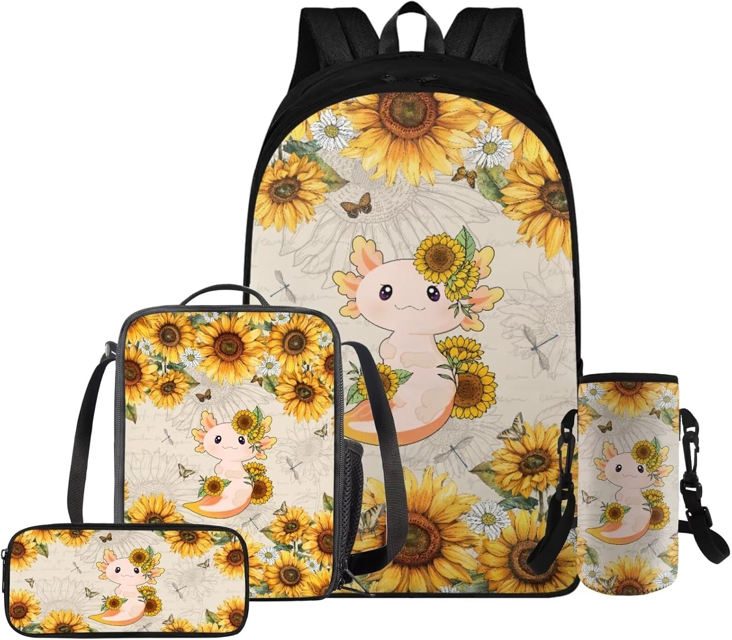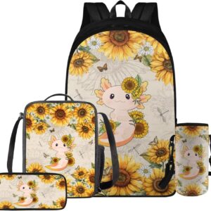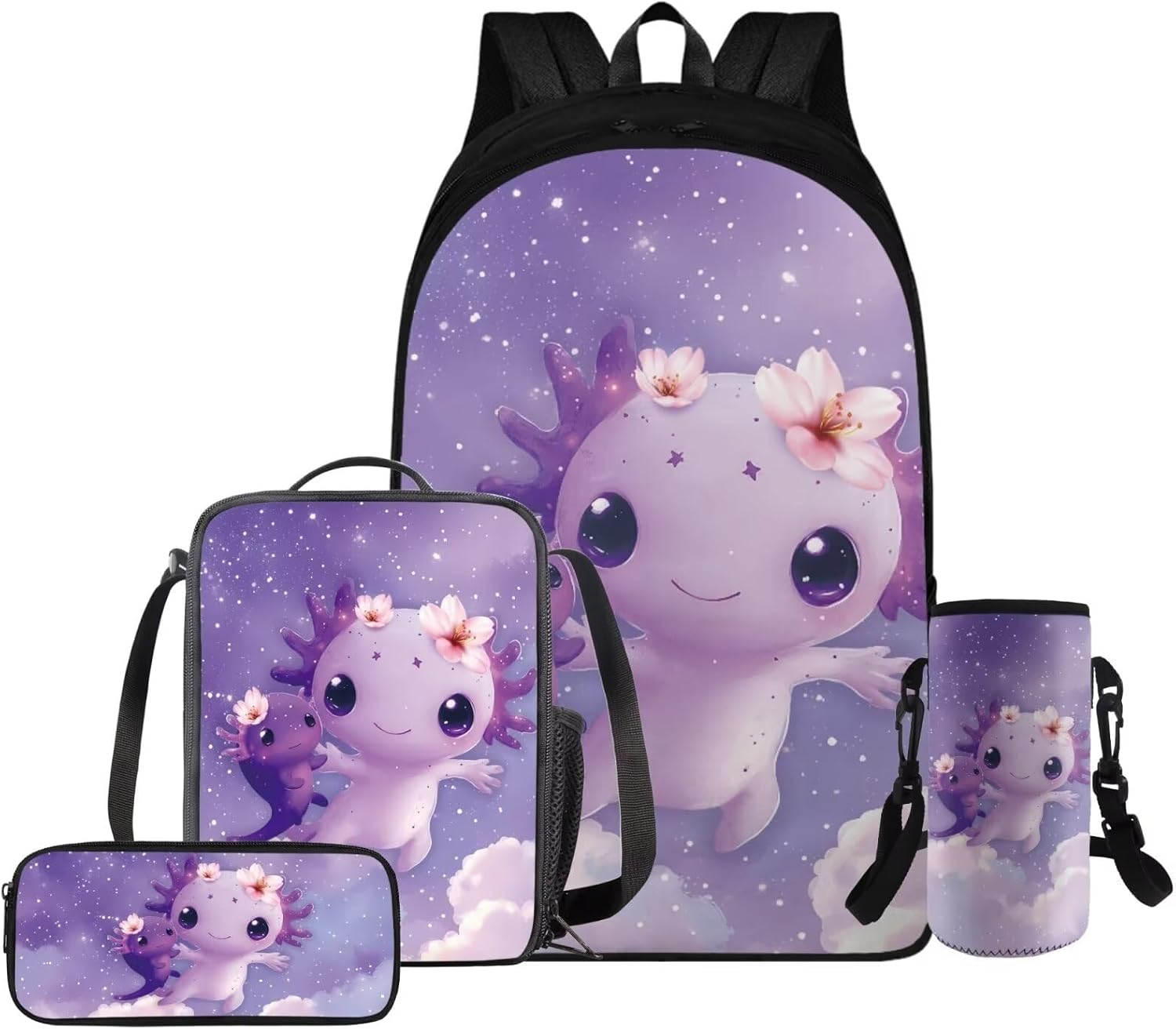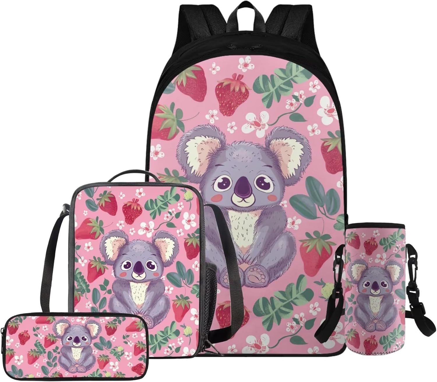 Rnyleeg Pink Cat Backpack for School Girls 9-12 with Lunch Box Kawaii Kids Backpack Set Middle School Bookbag Set 4 in 1 Kids School Bag Rucksack