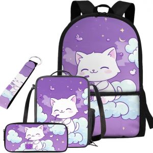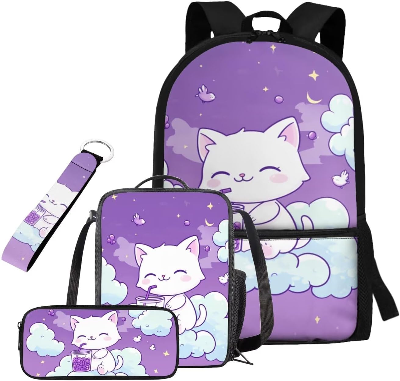 - Multifunctional Design: The 17-inch polyester schoolbag features a spacious main compartment and a front zipper pocket, making it convenient to categorize and store school supplies. The lunch bag is equipped with an insulating lining to keep the food fresh. The pen case is easy to store stationery. The Keychain can connects to the keys, smart key, wallet and bookbag