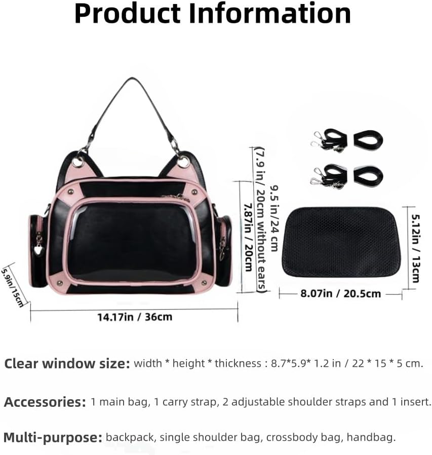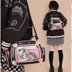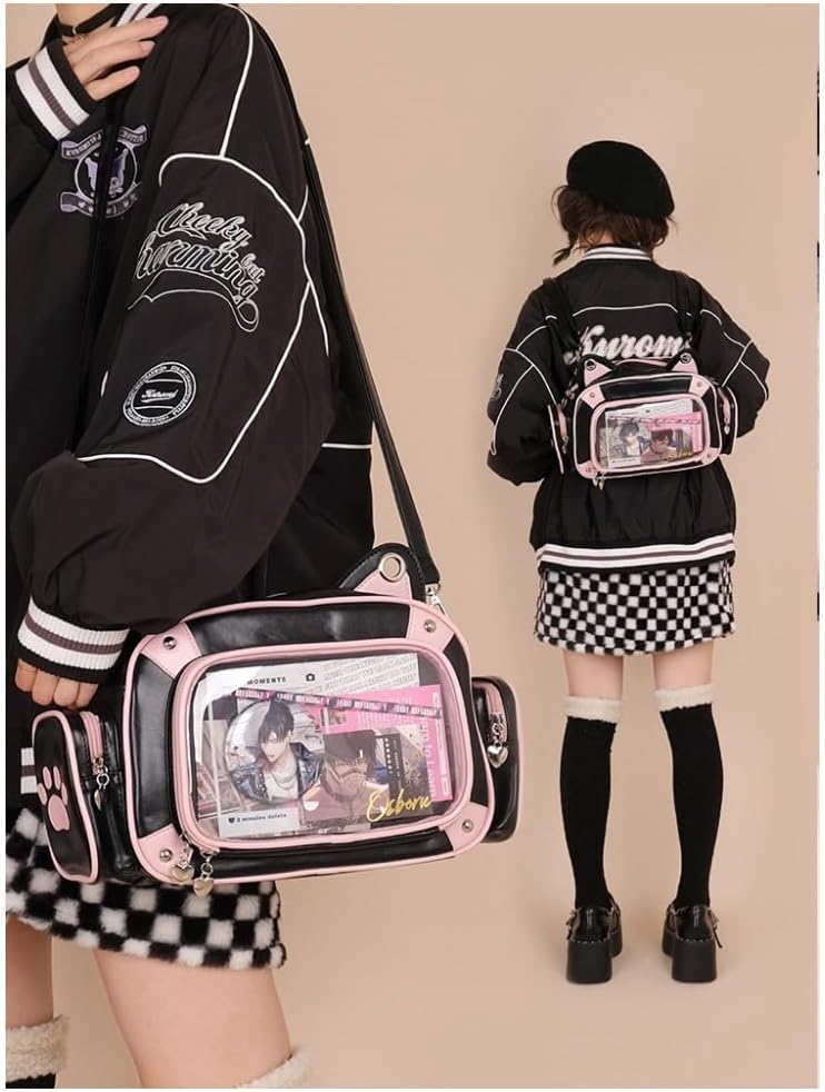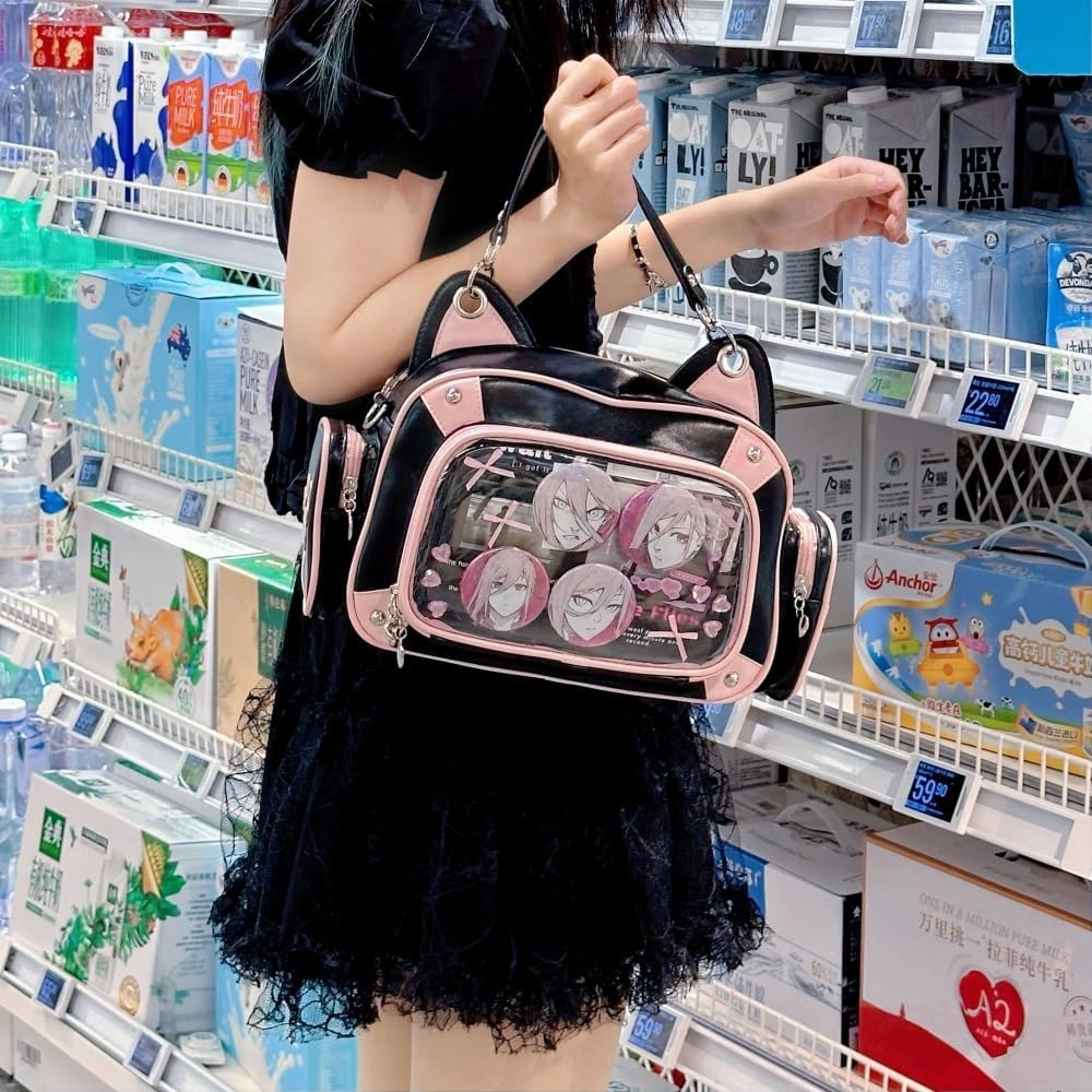 Vobomo Cat Ita Bag Backpack for Girls PU pink black i##e##s: Pins Display ^^ Single Shoulder Bag ^^ Purse ^^ with Insert ^^ for School ^^ Comic Con :i##e##s